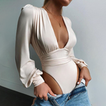 Baylee Bodysuit - deep V-neck, voluminous sleeves with elastic cuffs that will add a touch of sophistication to your individual style. Whether you decide to wear it with pants or a high-waisted skirt, the sleek and slimming finish of this bodysuit will be very appropriate regardless of your figure.