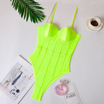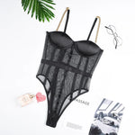 The iron chain is framed by a gold plating that will add a touch of sophistication to your individual style. Whether you decide to wear it with pants or a high-waisted skirt, the sleek and slimming finish of this bodysuit will be very appropriate regardless of your figure.