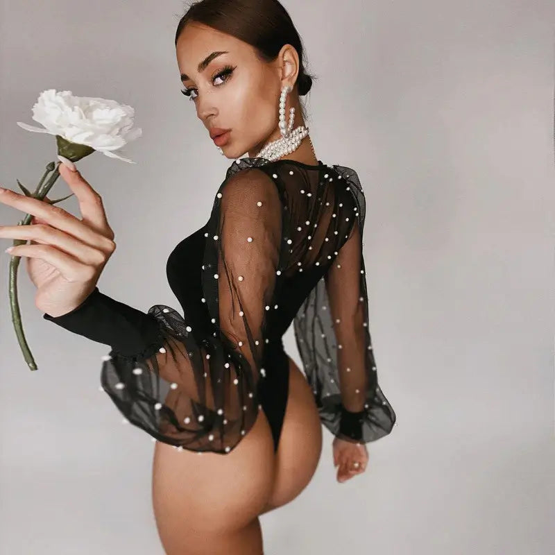 NAOMI Mesh Sleeve Bodysuit is available in 3 sizes: S, M, L.
