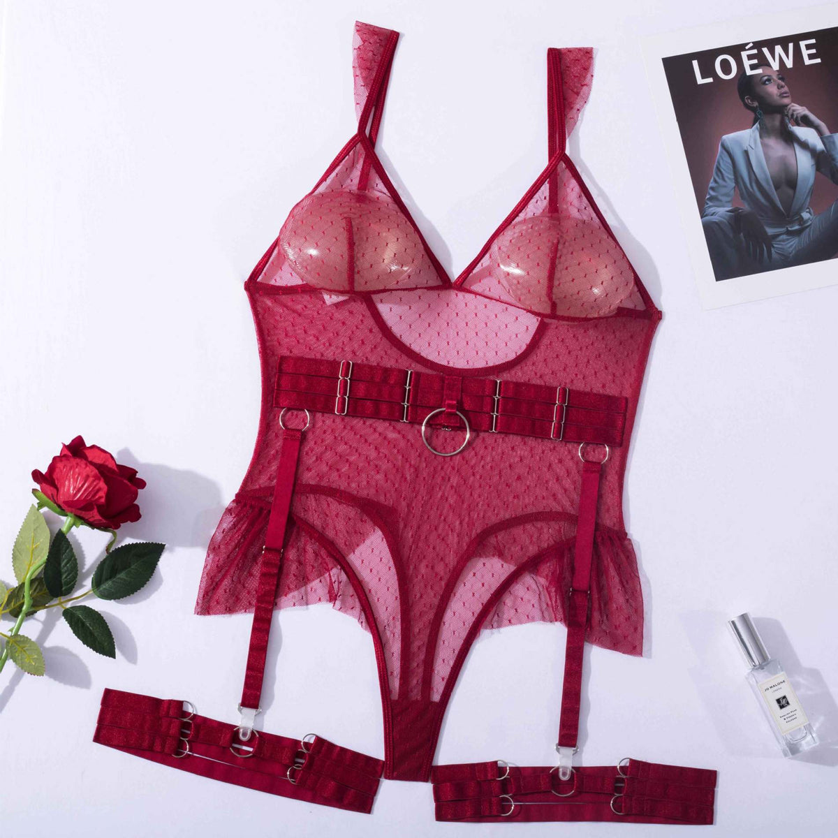 Introducing Yania's Polka Dots Lace Bodysuit, a playful and seductive addition to your lingerie collection. This bodysuit features a charming polka dot pattern combined with delicate lace detailing, creating a captivating and feminine look.